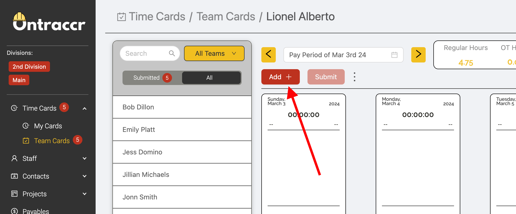 We've added a new 'Add' button to the Time Cards pages to make it easier to add an entry for a user in the web app.