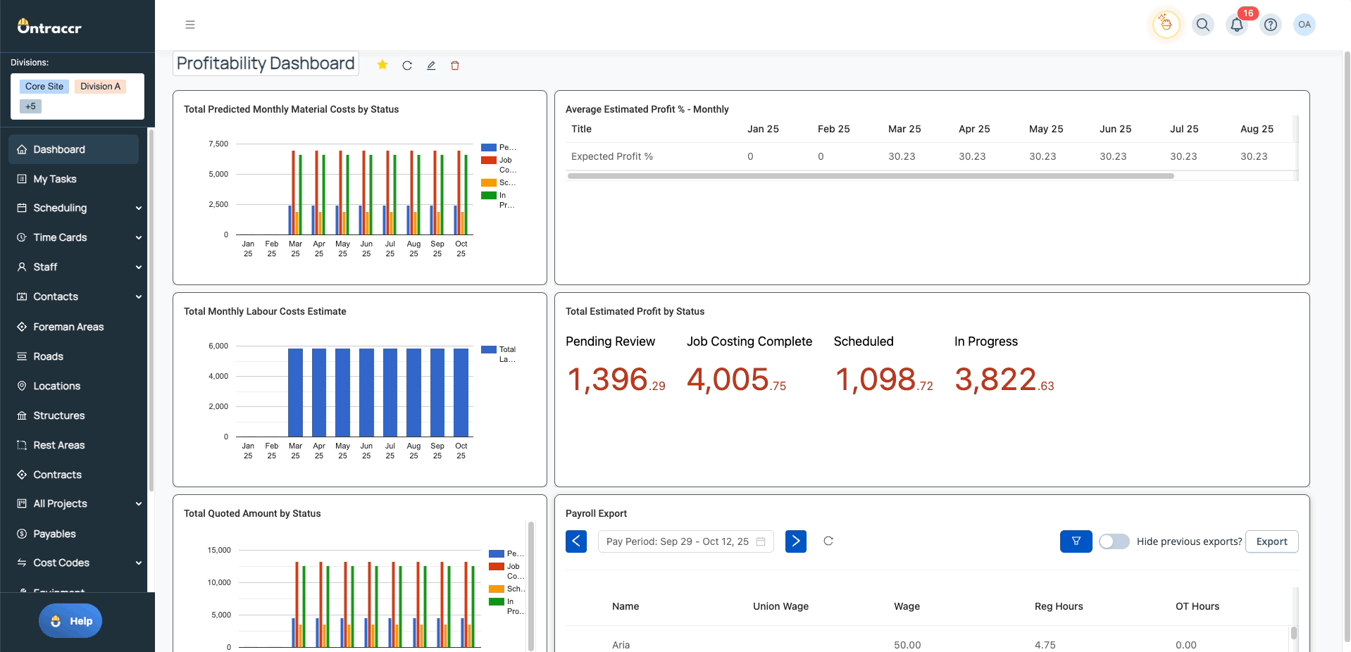 - Negative Amount Support in Progress Page: The Progress page now supports negative values in Actual Hours/Spend and Cost Code Distributions, improving cost tracking accuracy for reversals or credits.